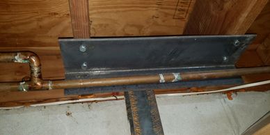 There is improper support for this I beam. Absolute uses "H" beams which has double the strength and then we block in the top with headers with bolts. After that we sister the headers again with more bolts and nuts.